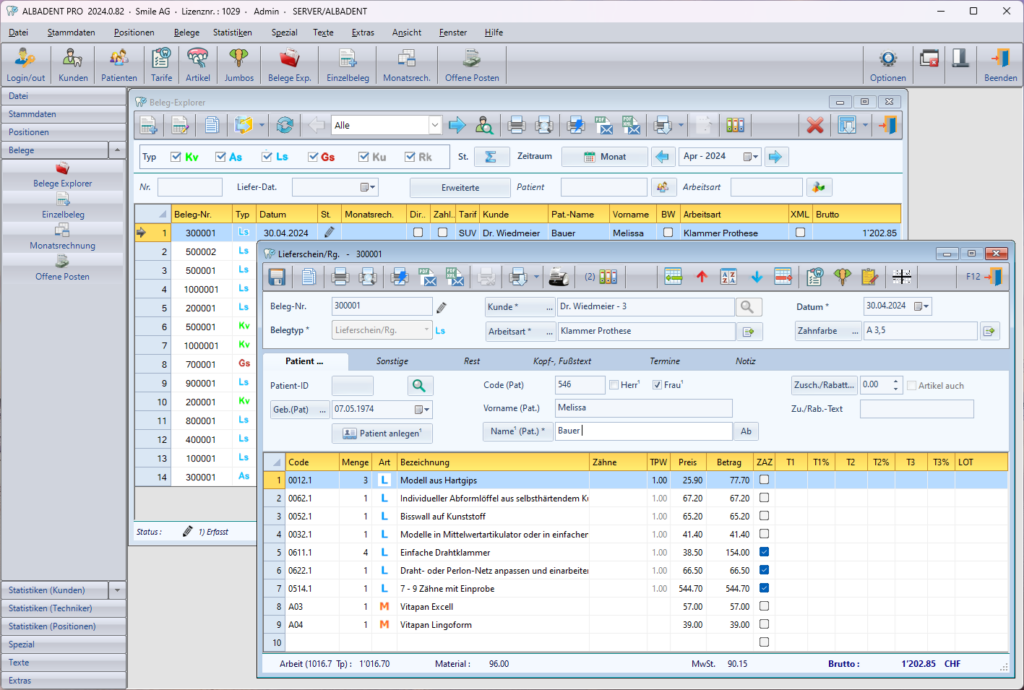 ALBADENT ist in Zusammenarbeit mit Zahntechnikern für die Schweiz entwickelt worden. Es erfüllt die neuen Anforderungen der MepV/MDR bezüglich Rückverfolgbarkeit und Dokumentation, indem alle relevanten Daten auftragsbezogen erfasst und abgelegt werden. Die Software ist für Labore jeder Größe interessant und bietet eine Mehrplatzfähigkeit. Zudem ist ALBADENT wirtschaftlich und benutzerfreundlich gestaltet.